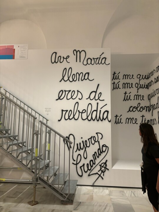 De seguida, fomos a caminhar vagarosamente, até ao Museu Nacional Centro de Arte Reina Sofia (aos domingos é gratuito das 12h30 até as 14h30, durante a semana é gratuito a partir das 19h). Ainda esperamos um pouquinho para entrar pois chegamos antes das 12h30. Nenhuma de nós percebe muito de arte. No entanto, exploramos algumas salas do Museu e perdemo-nos umas das outras. Foi tarefa "árdua" reencontrarmo-nos.